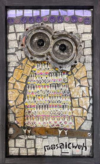 My art practice began over 30 years ago, starting with mixed media watercolors framed in shadow boxes. Growing up in a creative household and pursuing an art education in college gave me a strong foundation to explore different mediums. Eventually, my love for texture and depth led me to mosaics, starting with traditional materials like china, stained glass, and smalti. Over time, I transitioned into incorporating found objects and reclaimed materials, which shaped the unique style I use today.